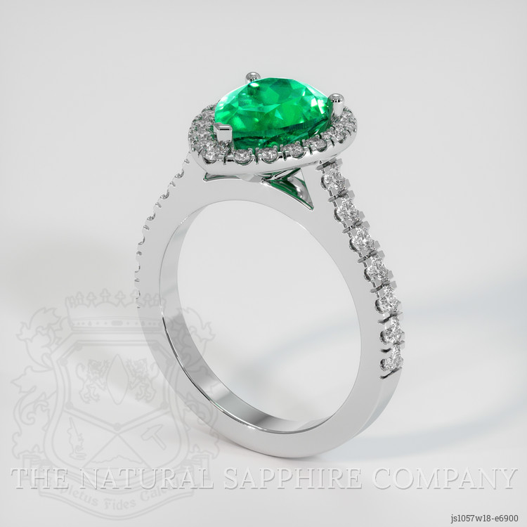 Pave Emerald Ring 1.52 Ct., 18K White Gold