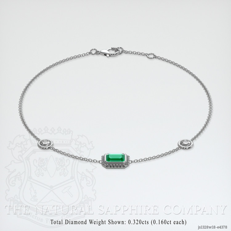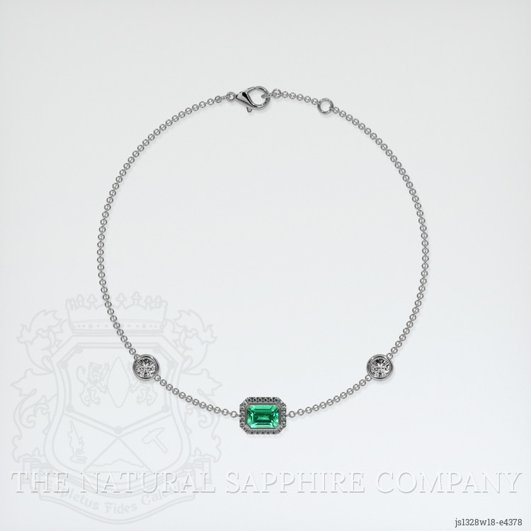 The bracelet features a beautiful, transparent 0.69 carat emerald cut shape green emerald with the dimensions of 5.97 x 4.57 x 3.70 mm and a emerald cut. It has a clarity grade of very very slightly included (evaluated at eye level), medium intense color saturation, and an excellent polish. The origin of this emerald is Russia.
