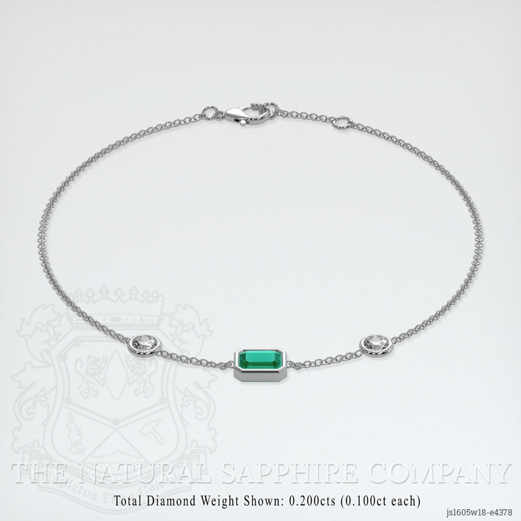 Accent Stones Emerald Bracelet 0.69 Ct.Tw.Total Carat Weight, 18K White Gold