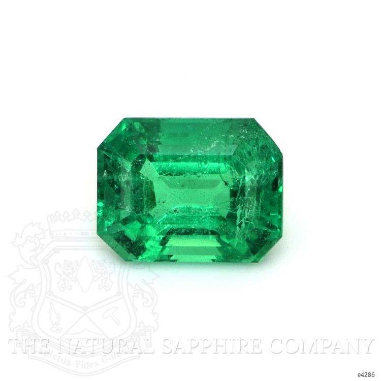 The bracelet features a beautiful, transparent 1.23 carat emerald cut shape green emerald with the dimensions of 7.43 x 5.74 x 4.30 mm and a emerald cut. It has a clarity grade of very slightly included (evaluated at eye level), intense color saturation, and an excellent polish. The origin of this emerald is Zambia.