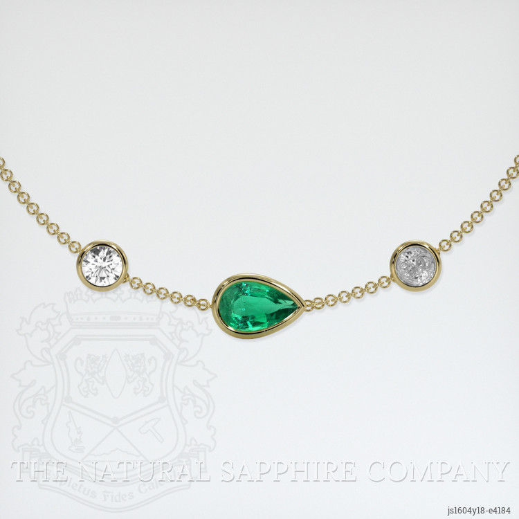 The bracelet features a beautiful, transparent 0.70 carat pear shape green emerald with the dimensions of 8.19 x 5.05 x 3.20 mm and a mixed brilliant cut. It has a clarity grade of very slightly included (evaluated at eye level), medium intense color saturation, and an excellent polish. The origin of this emerald is Zambia.