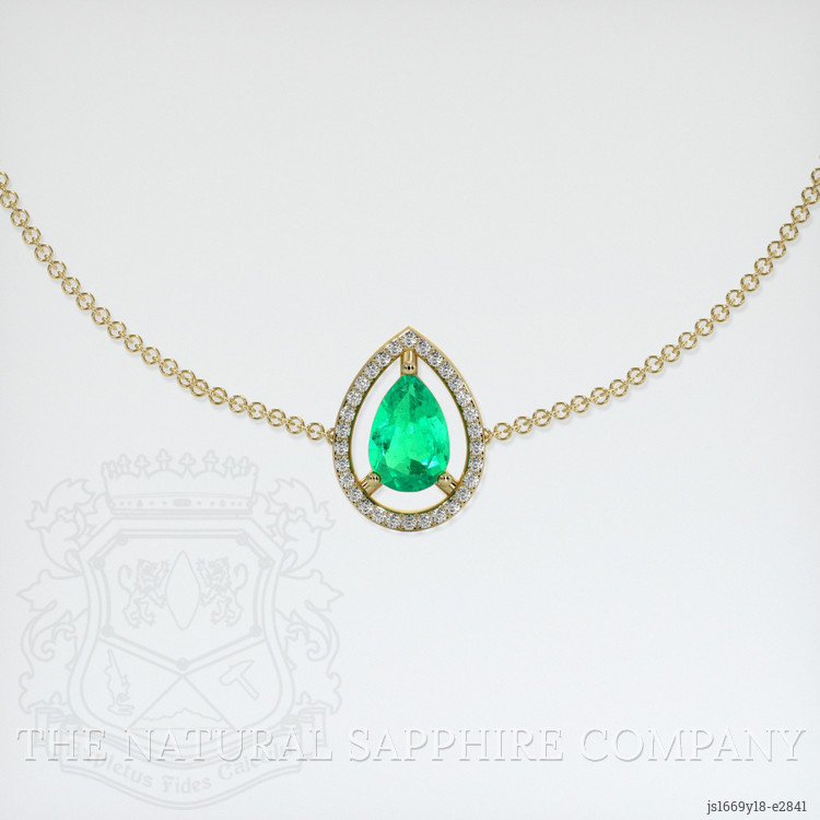The bracelet features a beautiful, transparent 0.76 carat pear shape green emerald with the dimensions of 7.86 x 5.37 x 3.36 mm and a mixed brilliant cut. It has a clarity grade of very slightly included (evaluated at eye level), intense color saturation, and an excellent polish. The origin of this emerald is Colombia.