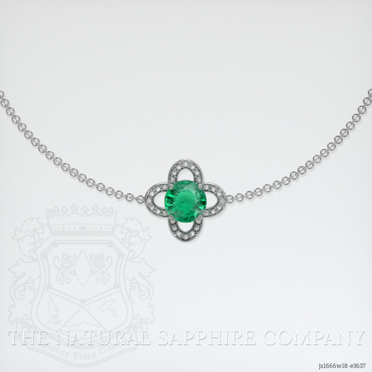 The bracelet features a beautiful, transparent 0.70 carat round shape green emerald with the dimensions of 6.02 x 6.02 x 3.38 mm and a mixed brilliant cut. It has a clarity grade of very slightly included (evaluated at eye level), vivid color saturation, and an excellent polish. The origin of this emerald is Zambia.