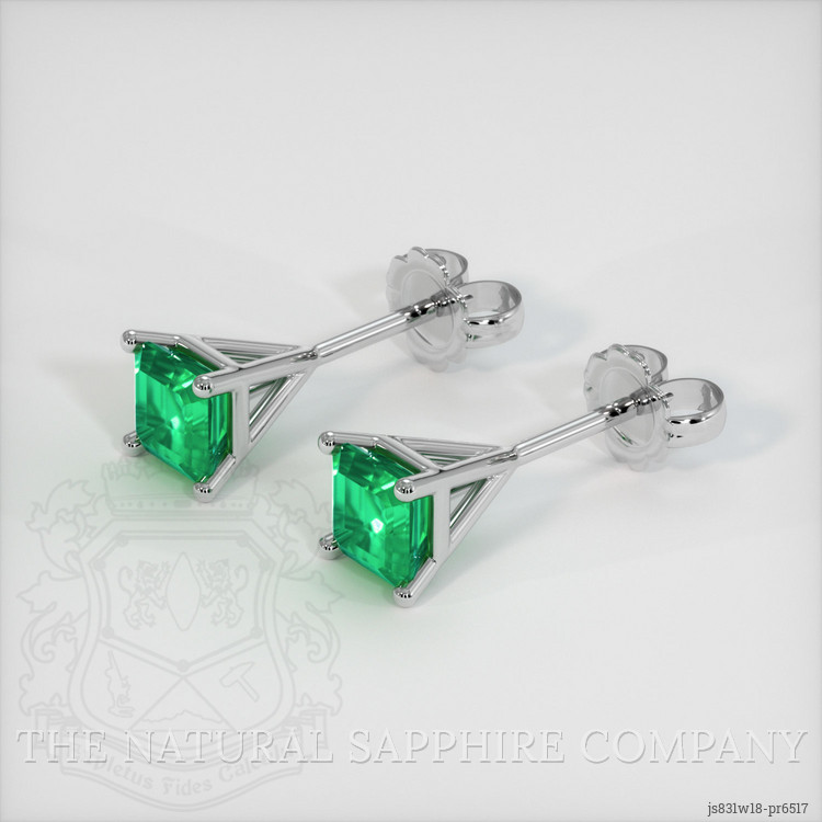 Studs Emerald Earring 0.64 Ct.Tw.Total Carat Weight, 18K White Gold