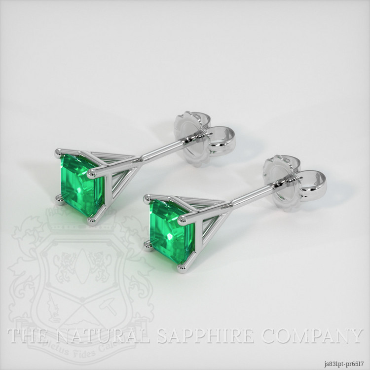 Studs Emerald Earring 0.64 Ct.Tw.Total Carat Weight, Platinum 950