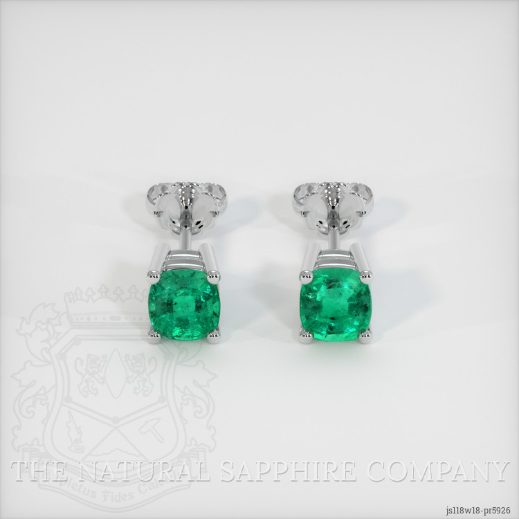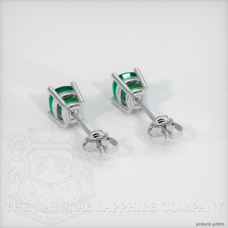 The Natural Emerald Company is proud to introduce these stunning earrings, a true reflection of elegance and sophistication. At the heart of each earring is a lustrous emerald, Stone ID PR5926, each weighing 0.91 carats. Mined from the rich soils of Zambia, these emeralds boast a lively green hue, with dimensions of 4.70 mm in length, 4.67 mm in width, and a profound depth of 3.51 mm, encapsulating the essence of luxury.