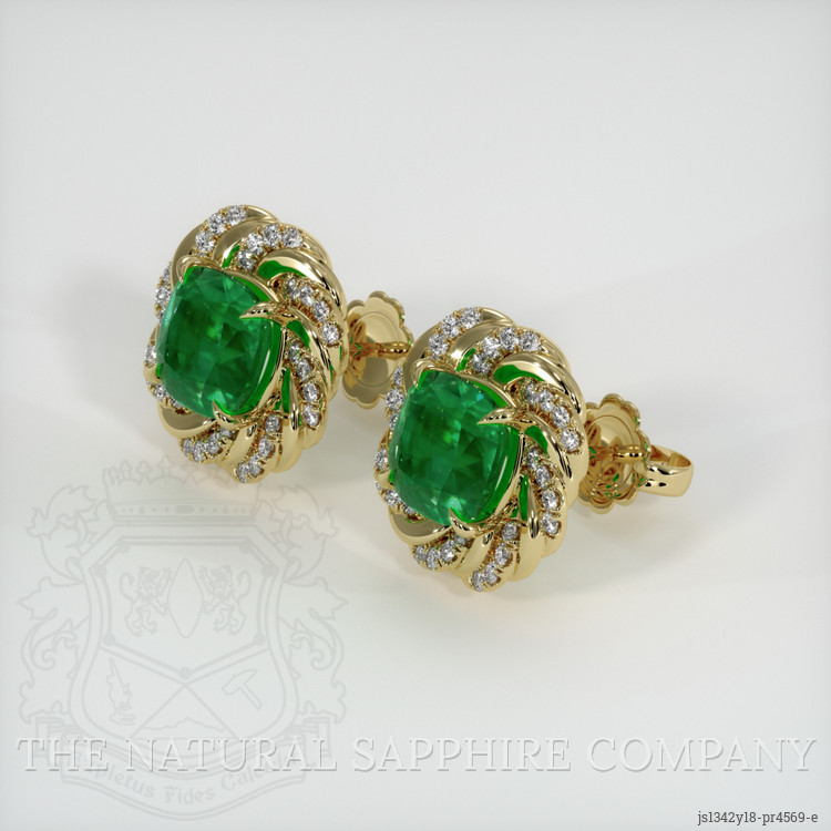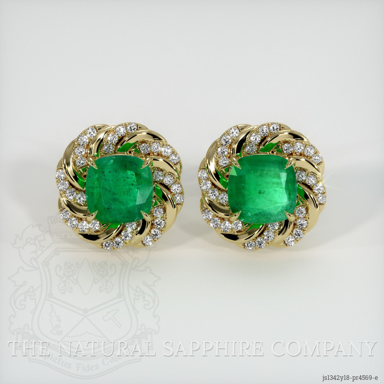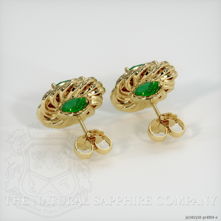 Studs Emerald Earring 2.63 Ct.Tw.Total Carat Weight, 18K Yellow Gold