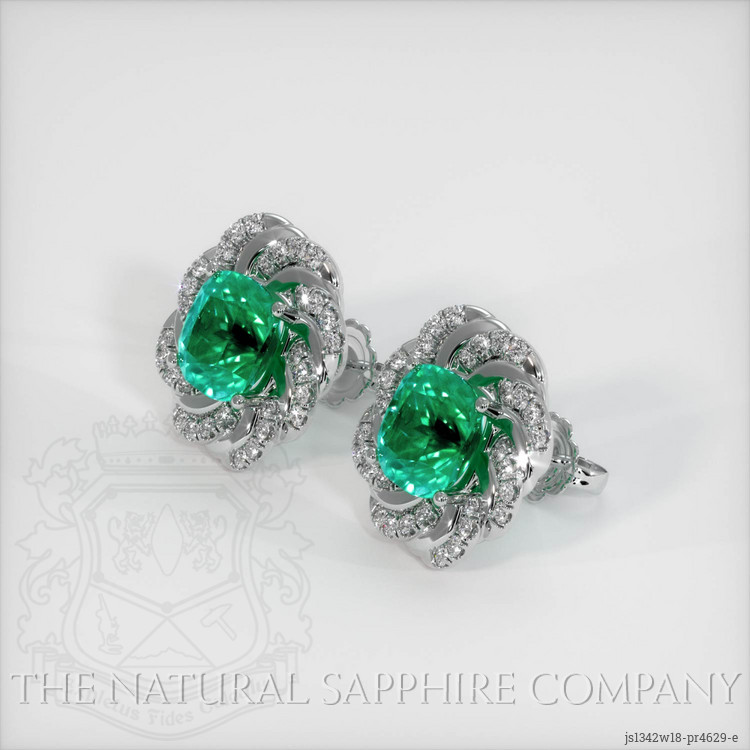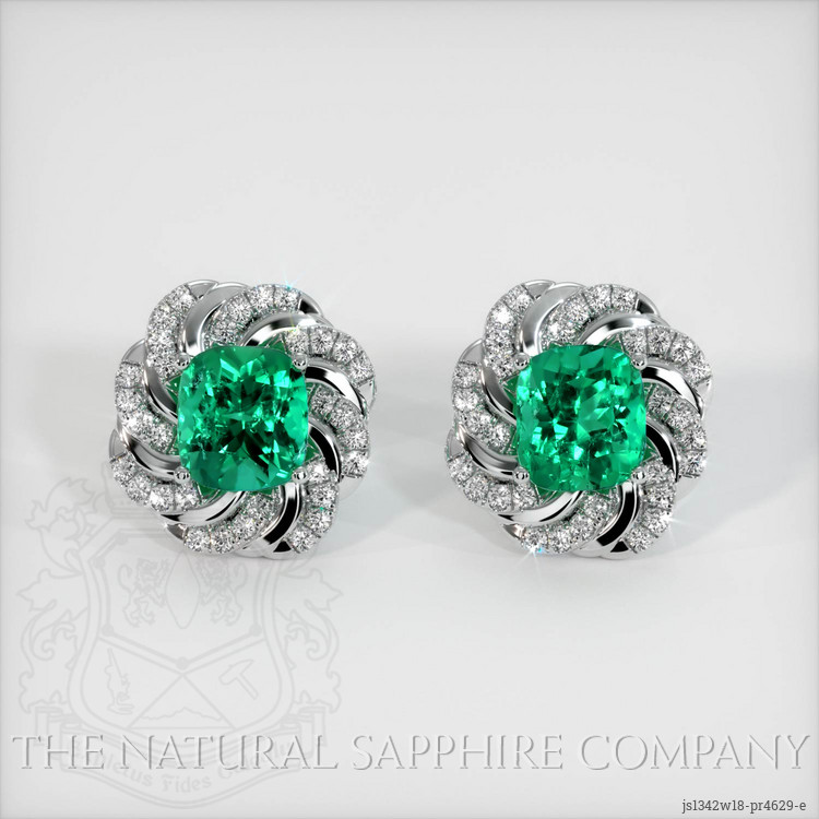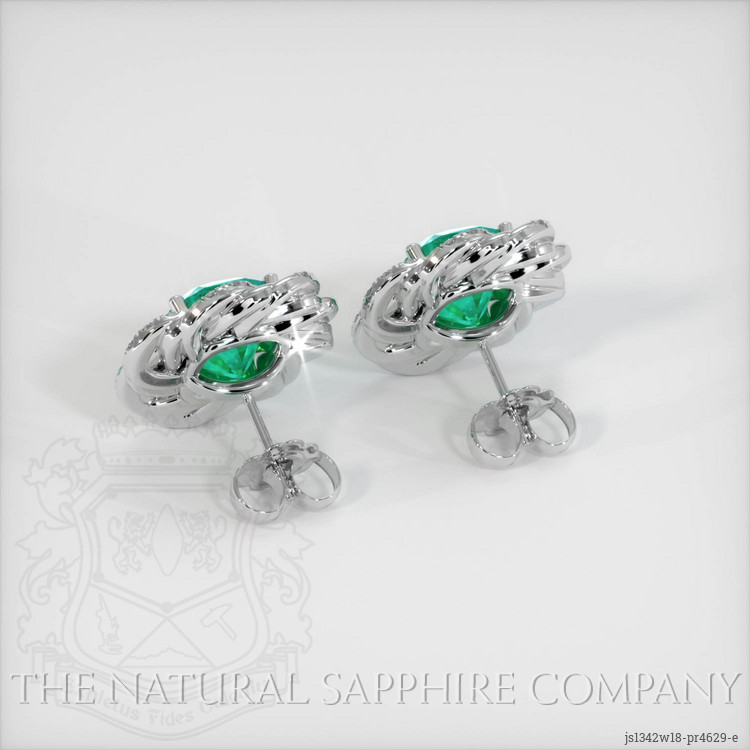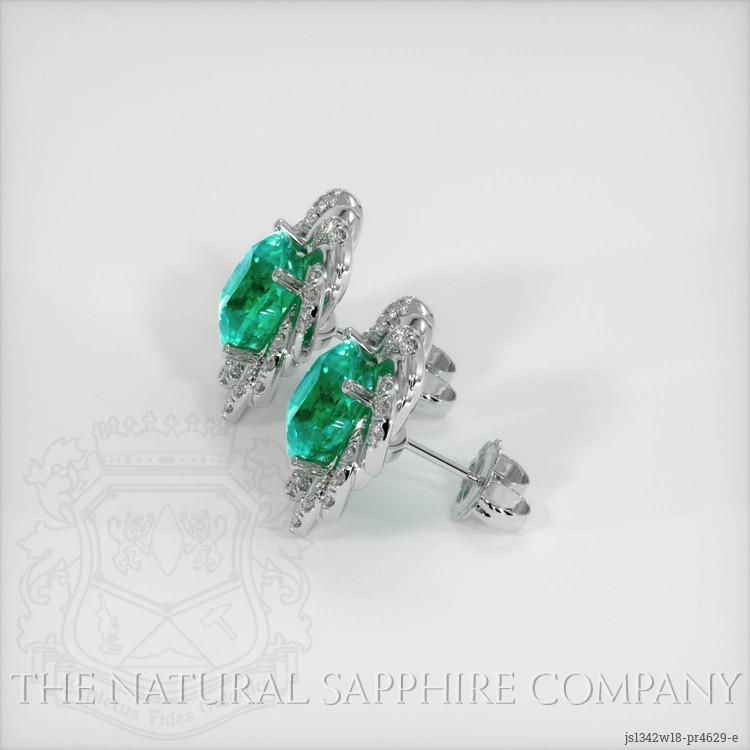 Studs Emerald Earring 3.63 Ct.Tw.Total Carat Weight, 18K White Gold