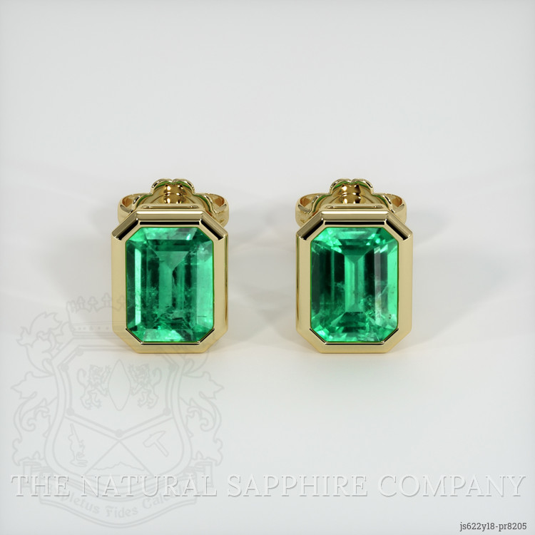 The union of emerald and 18K yellow gold in these earrings exemplifies a design philosophy that reverberates through time. The yellow gold setting acts as a delicate yet steadfast frame, enhancing the verdant glow of the emeralds without overshadowing their natural magnificence. This pairing was chosen deliberately, harking back to the opulent designs prevalent amongst royalty across various cultures, where gold and emeralds were a favored combination. This classic design speaks to those with an appreciation for tradition and legacy, adding a touch of grandeur to any occasion.