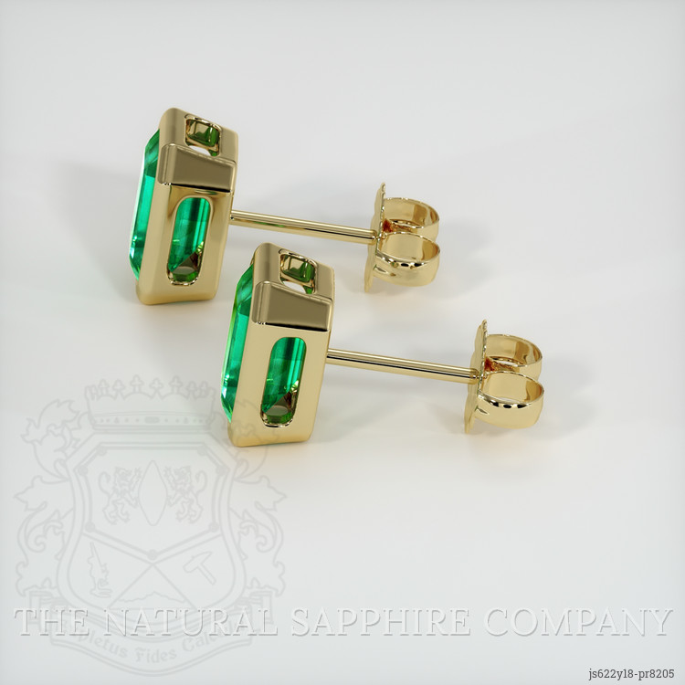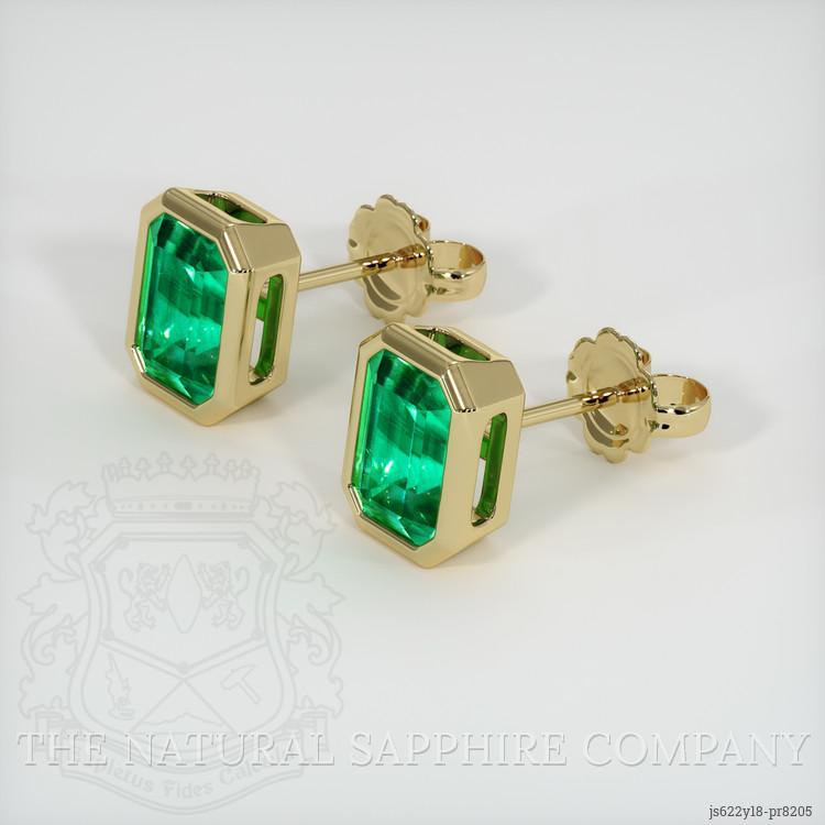 Studs Emerald Earring 1.66 Ct.Tw.Total Carat Weight, 18K Yellow Gold