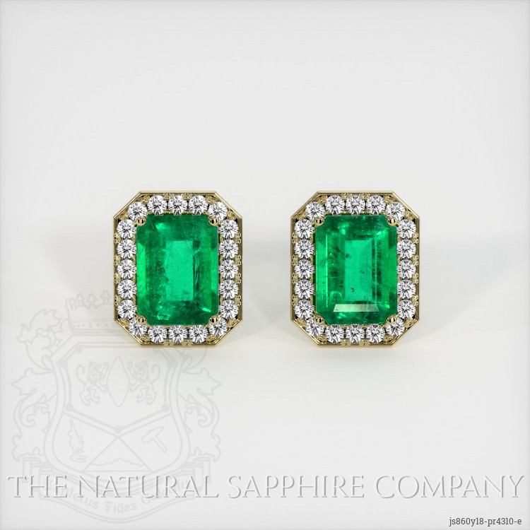 Studs Emerald Earring 2.76 Ct.Tw.Total Carat Weight, 18K Yellow Gold
