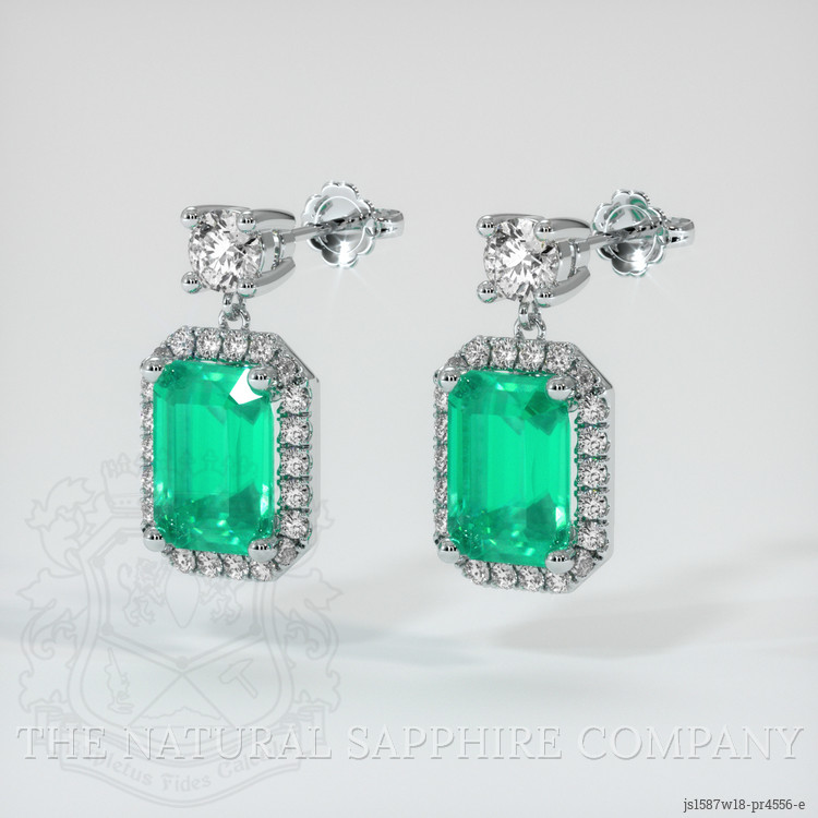 Pave Emerald Earring 2.80 Ct.Tw.Total Carat Weight, 18K White Gold