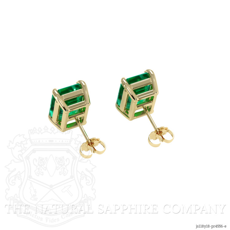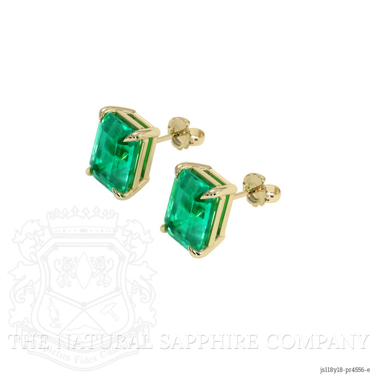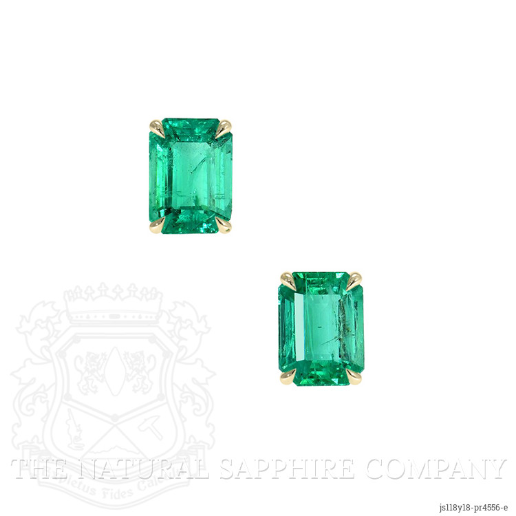 Ensuring the clarity and brilliance of these gemstones are enhanced is the excellent polish executed on each facet, creating a mirror-like finish that reflects the high standards of The Natural Emerald Company's craftsmanship. The earrings' setting is crafted in 18K yellow gold, a metal chosen not only for its luxurious appeal but also for its ability to enhance the rich green of the emeralds. The simplistic yet refined design of the setting provides a contemporary touch, while allowing the stones to take center stage, creating a harmonious blend of modern and classic elements.