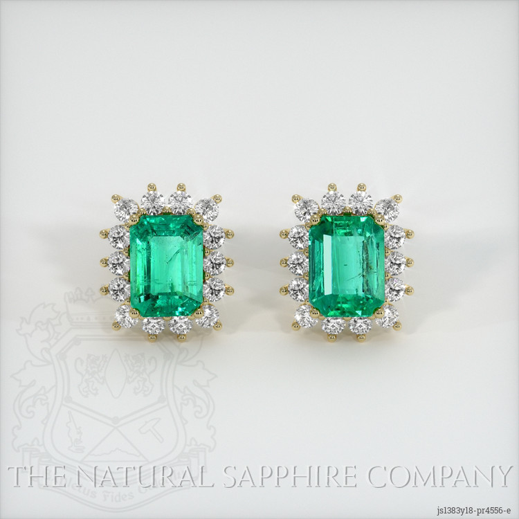 Halo Emerald Earring 2.80 Ct.Tw.Total Carat Weight, 18K Yellow Gold