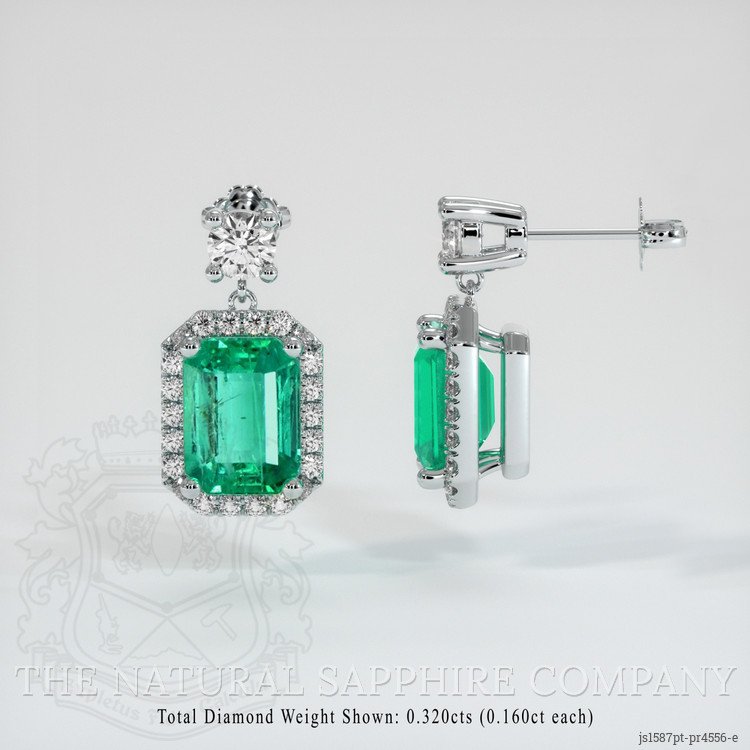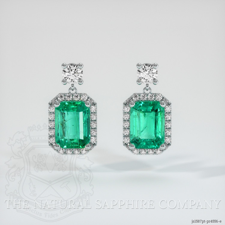Pave Emerald Earring 2.80 Ct.Tw.Total Carat Weight, Platinum 950