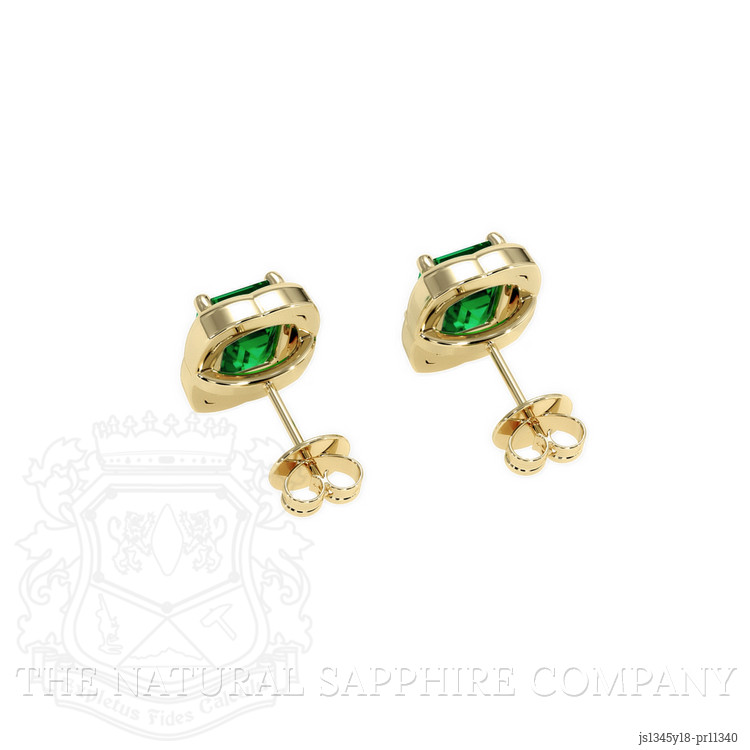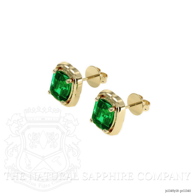 Studs Emerald Earring 2.85 Ct.Tw.Total Carat Weight, 18K Yellow Gold