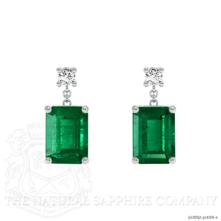 Accent Stones Emerald Earring 2.91 Ct.Tw.Total Carat Weight, Platinum 950
