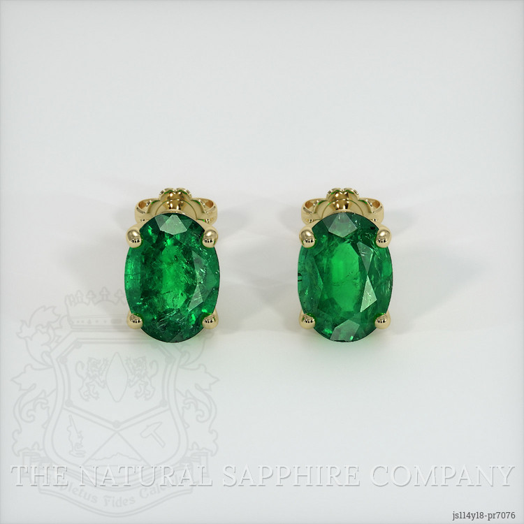 Studs Emerald Earring 1.69 Ct.Tw.Total Carat Weight, 18K Yellow Gold