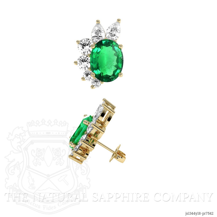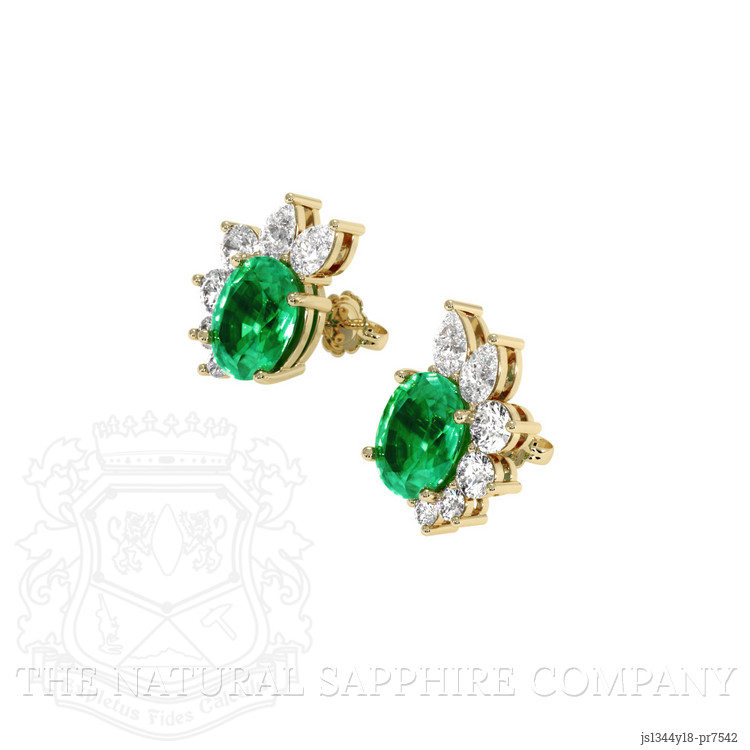 Accent Stones Emerald Earring 4.81 Ct.Tw.Total Carat Weight, 18K Yellow Gold