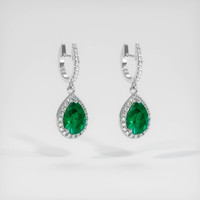 Pave Emerald Earring 1.05 Ct.Tw.Total Carat Weight, Platinum 950