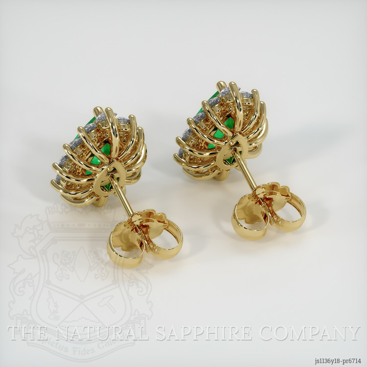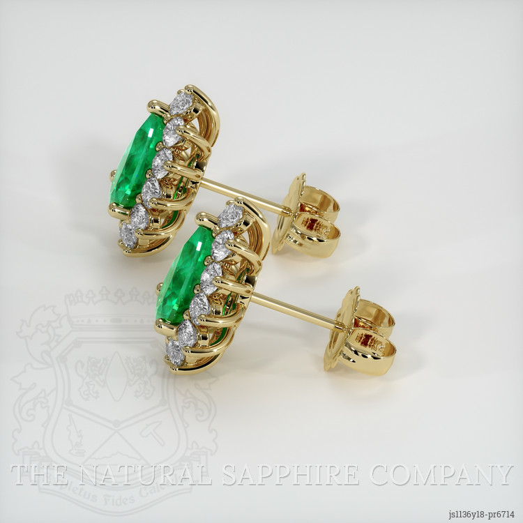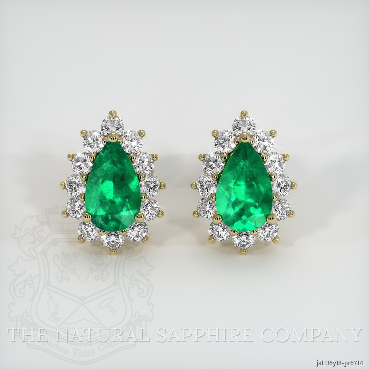 Introducing our exquisite emerald and diamond earrings, a testament to timeless elegance and superior craftsmanship. Meticulously fashioned by The Natural Emerald Company, these earrings feature a stunning pair of pear-shaped green emeralds sourced from the rich mines of Colombia. With a total carat weight of 1.34, each emerald measures 8.29 x 4.91 x 3.51 mm and is gracefully crafted in a mixed brilliant cut that showcases its depth and brilliance. The slightly included clarity, observable only at eye level, enhances the natural character of these stones while their intense color saturation embodies the lush vibrancy of their origin.