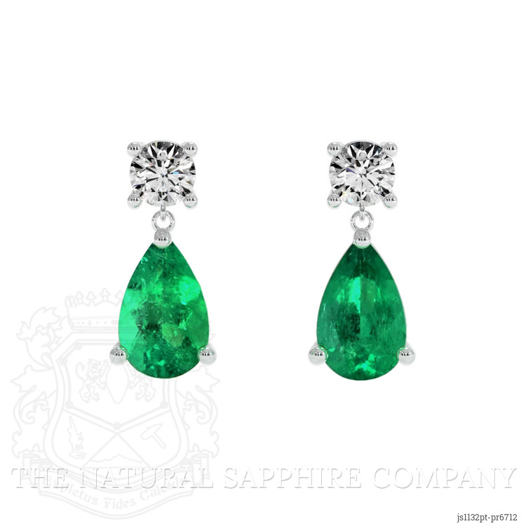 Accent Stones Emerald Earring 1.55 Ct.Tw.Total Carat Weight, Platinum 950