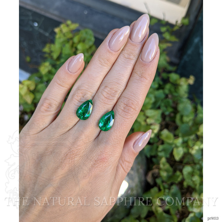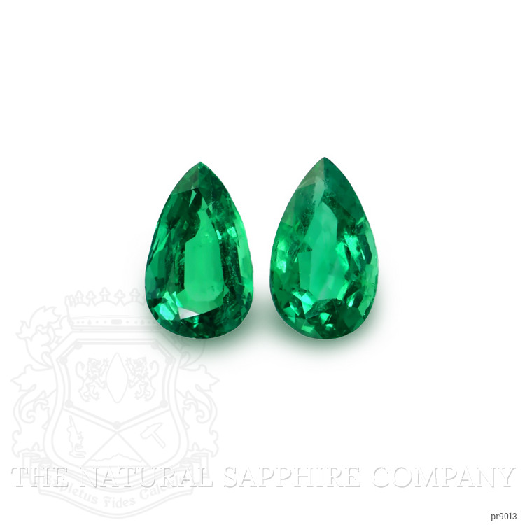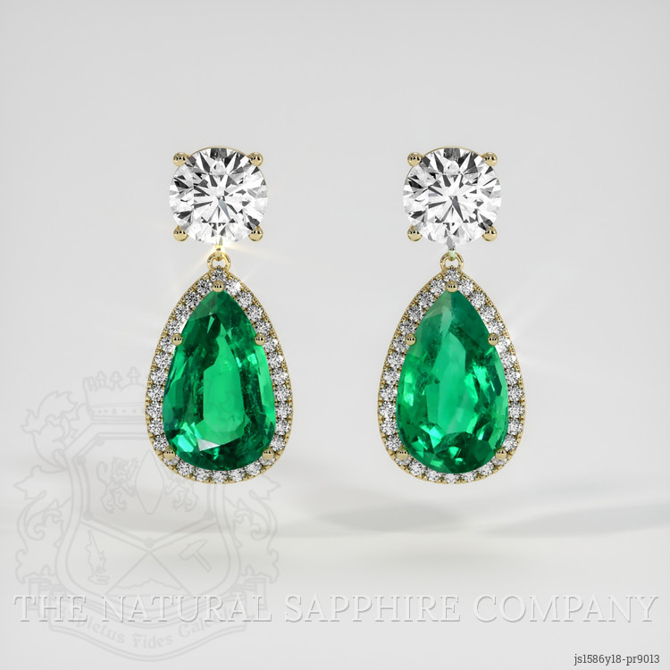 Introducing the exquisite pair of earrings from The Natural Emerald Company, meticulously crafted to accentuate the innate beauty of emeralds. These earrings showcase a stunning set of transparent, pear-shaped green emeralds, collectively weighing an impressive 8.53 carats. Each emerald measures 14.14 x 8.67 x 6.02 mm and features a mixed brilliant cut that maximizes light reflection. As a testament to their superior quality, these gemstones boast a clarity grade of very slightly included at eye level, vivid color saturation, and an excellent polish, flawlessly capturing the allure of their Zambian origin.