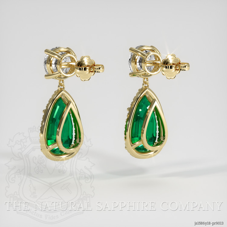 The emeralds and diamonds are securely embraced in a setting of 18K yellow gold. This choice of setting not only ensures the gemstones remain securely in place but also adds a timeless charm and elegance to the earrings' overall appearance. The robust yet elegant craftsmanship provides peace of mind, assuring wearers of both durability and style in every occasion. Experience the epitome of luxury and craftsmanship with this distinguished piece from The Natural Emerald Company, where each detail is conceived to combine beauty, precision, and enduring quality in the world of fine jewelry.