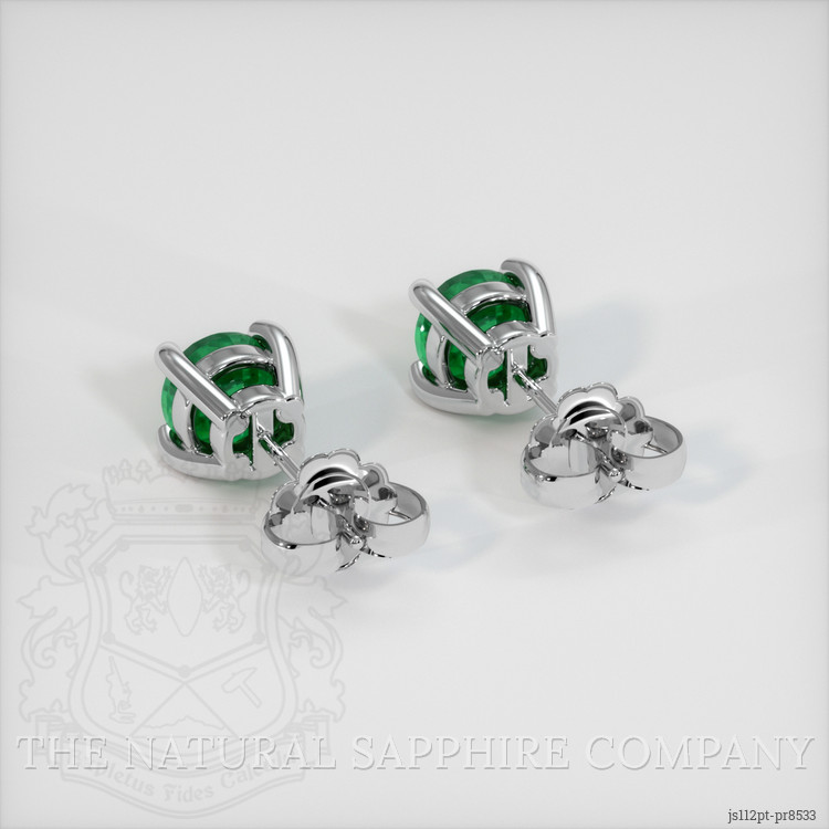Crafted to perfection, these emeralds are set in luxurious platinum 950, a metal that has equally stood the test of time with its strength and rare purity. The smooth, excellent polish of the gemstones enriches their natural splendor, allowing each facet to engage gracefully with light. With precise dimensions of 4.81 x 4.79 x 3.50 mm, the gemstones exhibit a harmonious balance of sophistication and subtlety. This exquisite pairing offers an elegant nod to classic design, appealing to connoisseurs who cherish the seamless blend of tradition and contemporary luxury.