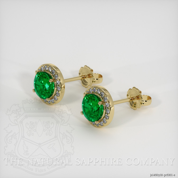 These emerald earrings stand out significantly when compared to other popular earring styles available in the market. The emeralds featured in these earrings are transparent and possess a superior total carat weight of 1.07 carats. Their round shape coupled with the impressive dimensions of 5.35 x 5.25 x 3.66 mm offer a balanced and radiant look, perfect for those seeking both elegance and luxury. The mixed brilliant cut of these emeralds further enhances their brilliance and sparkle, setting them apart from other gemstones that may not boast such a detailed cut.