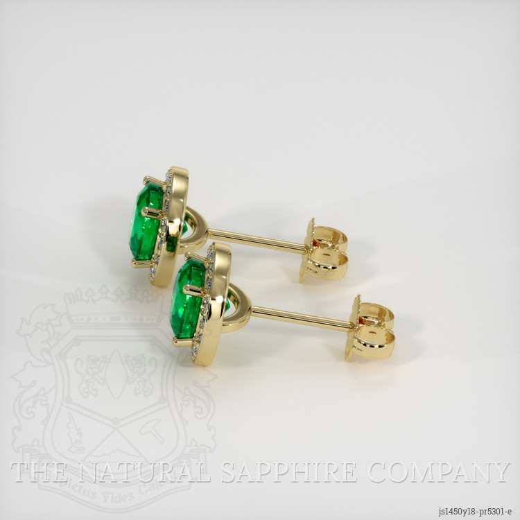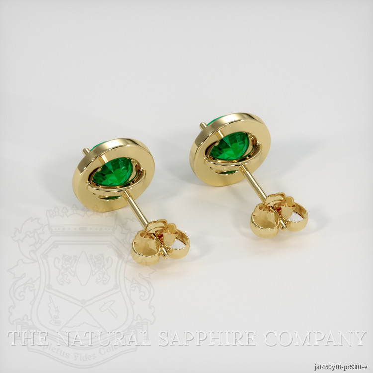 Studs Emerald Earring 1.07 Ct.Tw.Total Carat Weight, 18K Yellow Gold