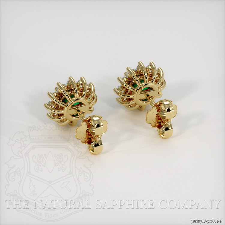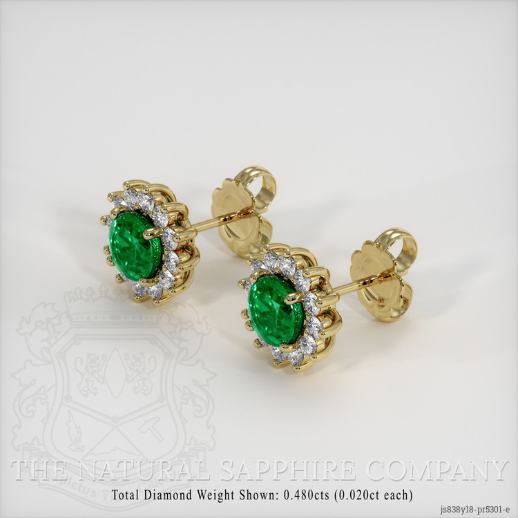 At the heart of these stunning earrings is a beautiful, transparent pair of emeralds that collectively weigh 1.07 carats. These round-shaped green emeralds, with dimensions of 5.35 x 5.25 x 3.66 mm, are crafted with a mixed brilliant cut. Their clarity, graded as slightly included (evaluated at eye level), ensures their natural brilliance, coupled with a vivid color saturation and an excellent polish. Sourced from Zambia, these emeralds highlight ethical and eco-friendly sourcing practices, reassuredly contributing to sustainable gem mining.