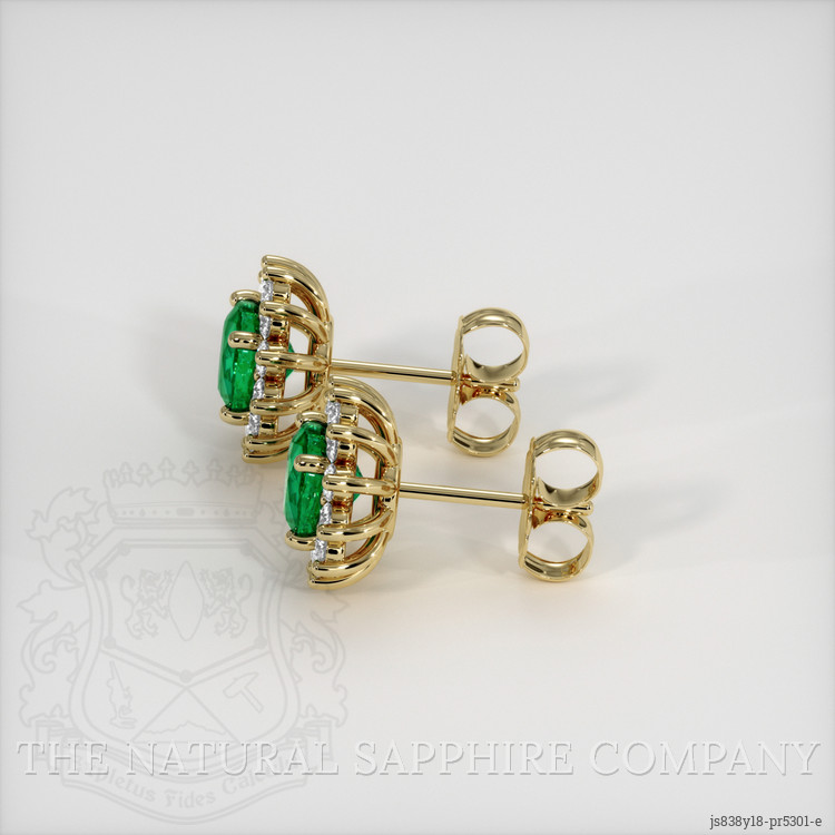 Halo Emerald Earring 1.07 Ct.Tw.Total Carat Weight, 18K Yellow Gold