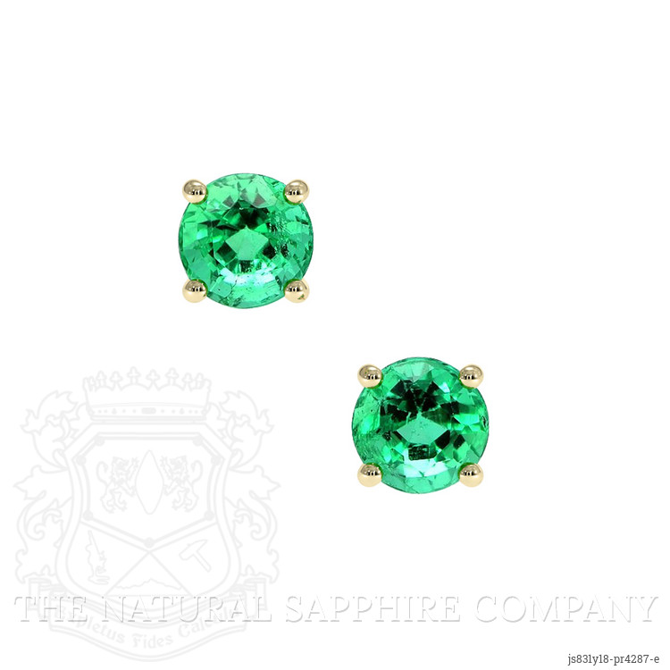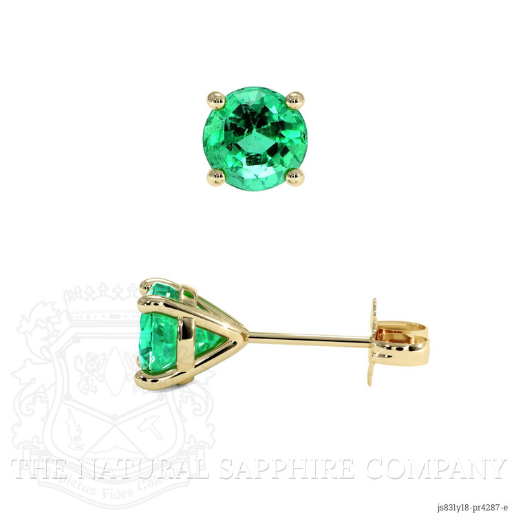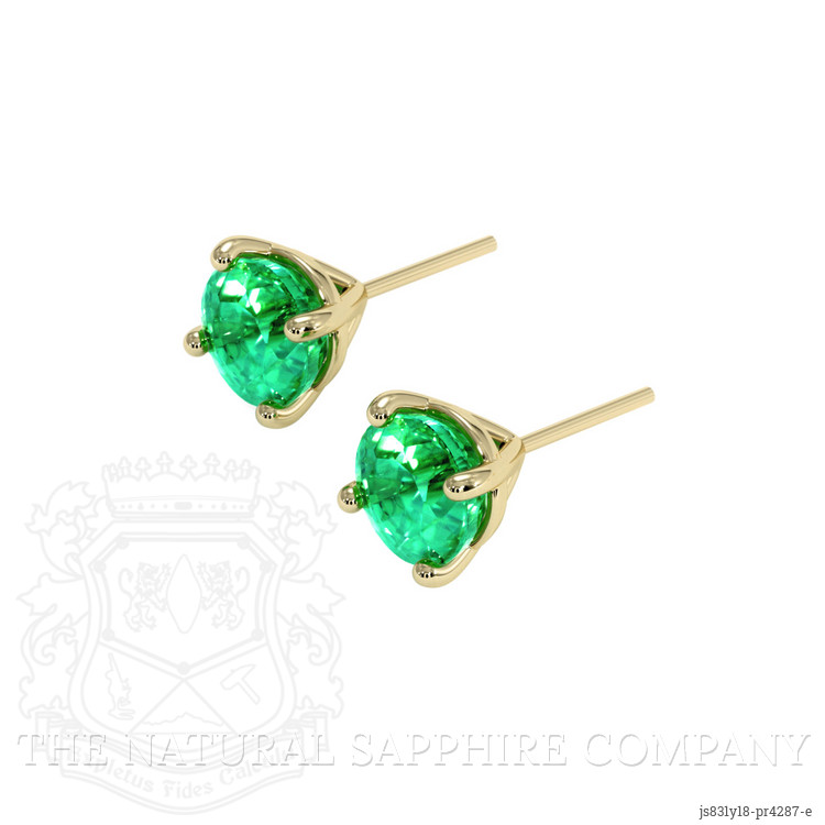Studs Emerald Earring 1.31 Ct.Tw.Total Carat Weight, 18K Yellow Gold