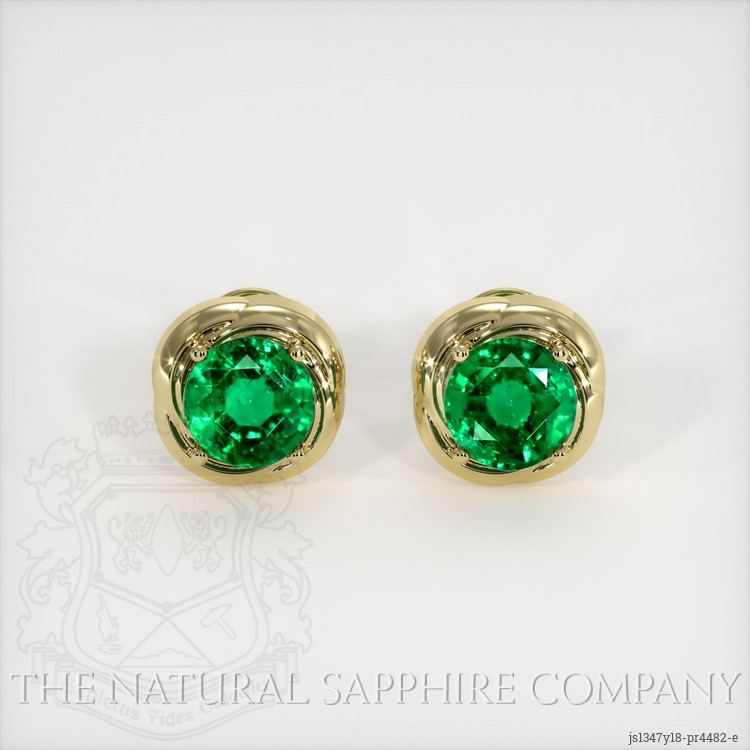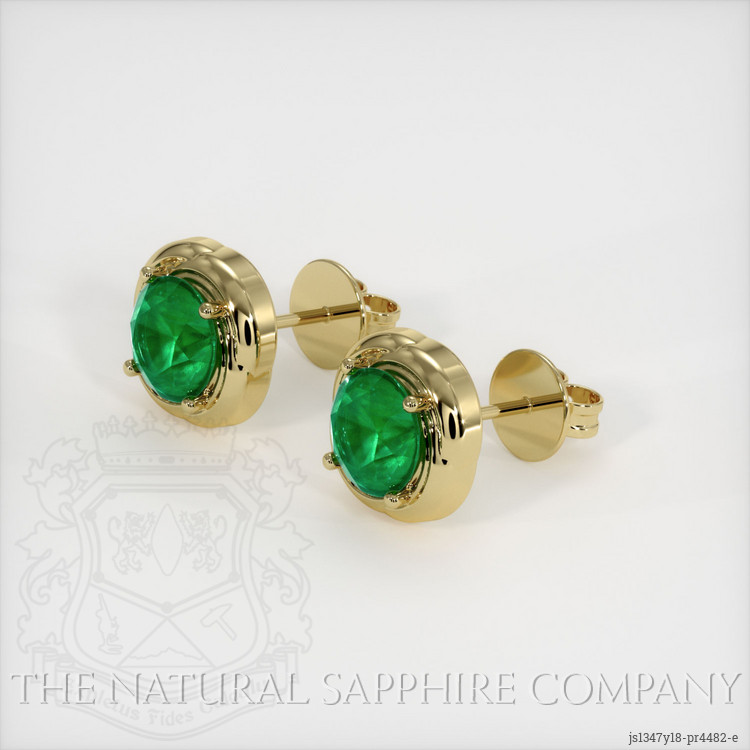 Studs Emerald Earring 1.88 Ct.Tw.Total Carat Weight, 18K Yellow Gold