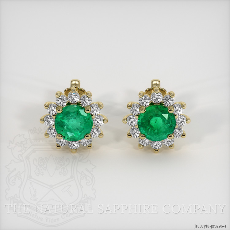 Upon glancing at these exquisite earrings, one is transported to a world of elegance and romance. The delicate whisper of the green emeralds is reminiscent of a lush, hidden paradise. Each emerald, a true Zambian treasure, shines with a brilliance that is nothing short of mesmerizing. With a combined carat weight of 2.19, these emeralds are the focal point, drawing the eye with their round, mixed-brilliant cut. Their dimensions, 6.54 x 6.46 x 4.80 mm, allow them to cast a spell of enchantment and admiration. The transparency, coupled with slight inclusions that are gently kissed by nature, lends them an authenticity and charm. The deep, intense green saturates the stone, evoking the verdant richness of a forest canopy kissed by sunlight. Each gem is polished to perfection, achieving a state of sublime reflection.