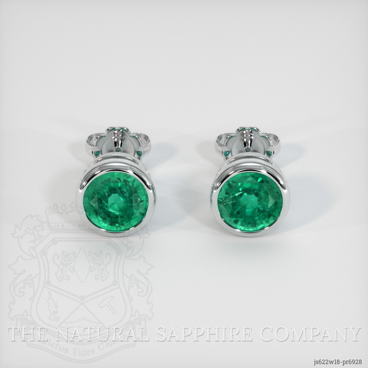 Detailed measurements of 7.21 x 7.06 x 5.16 mm for each round-shaped emerald showcase their substantial presence and combined total carat weight of 2.73, capturing light in a way that enchants all who behold them. The transformation continues as these splendid emeralds find their final residence in an exquisite setting of 18K white gold. The cool luster of the precious white gold enhances the vibrant green gemstone, creating a harmonious balance that exudes elegance and sophistication.