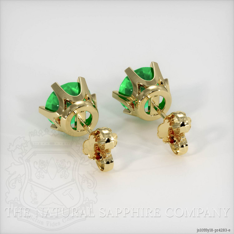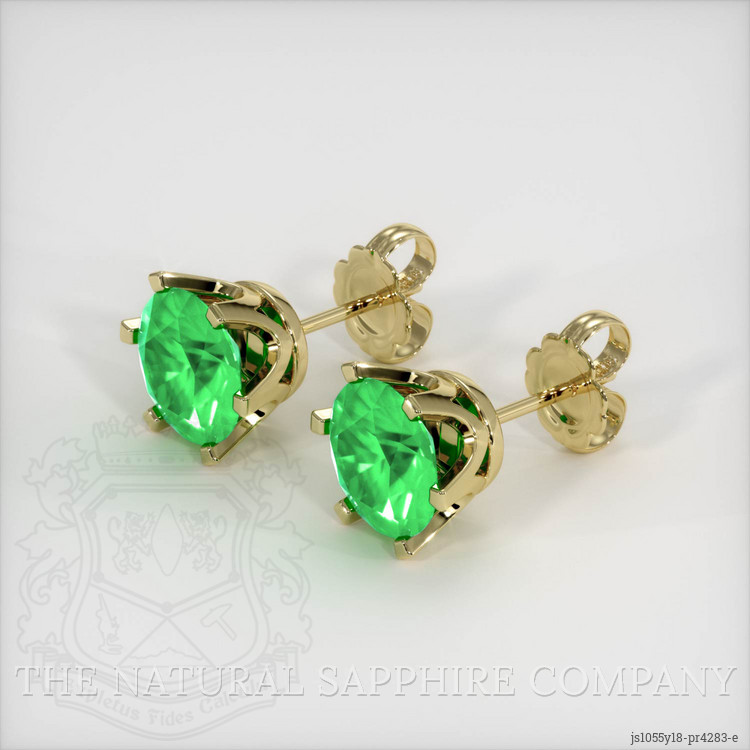 Studs Emerald Earring 2.91 Ct.Tw.Total Carat Weight, 18K Yellow Gold