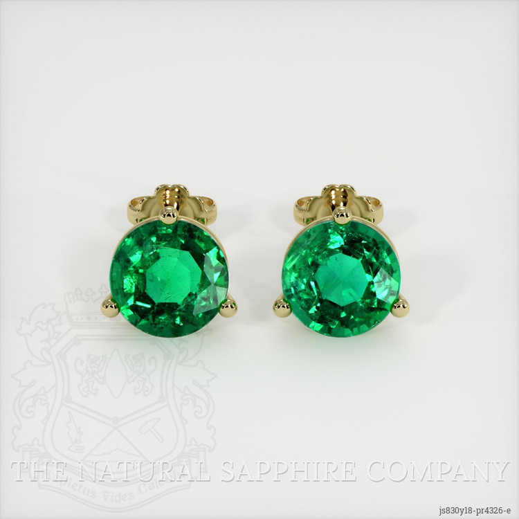 Studs Emerald Earring 2.99 Ct.Tw.Total Carat Weight, 18K Yellow Gold