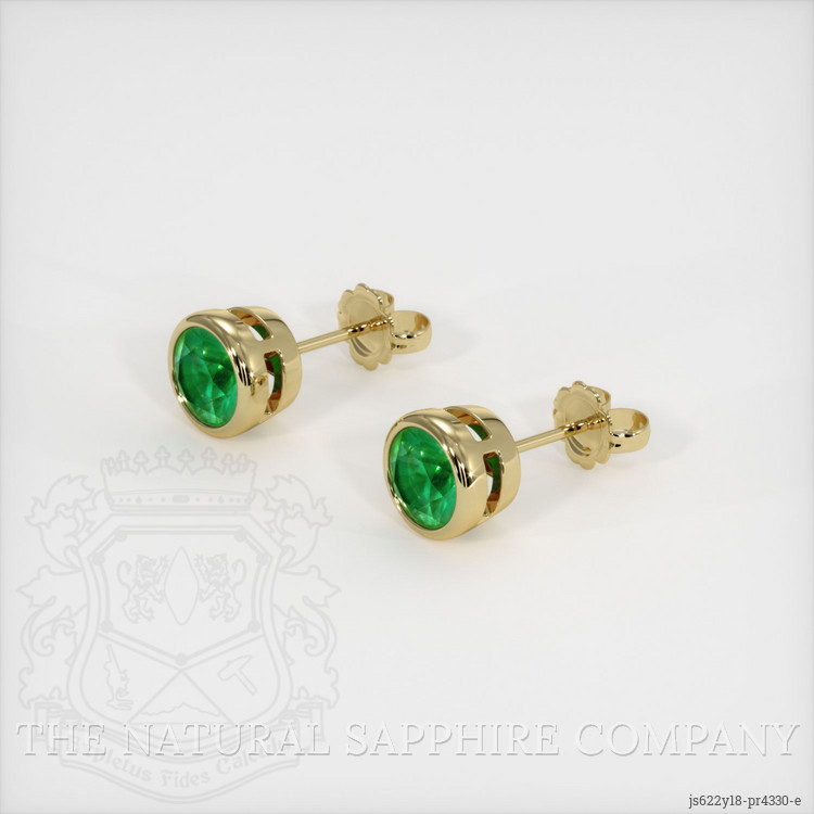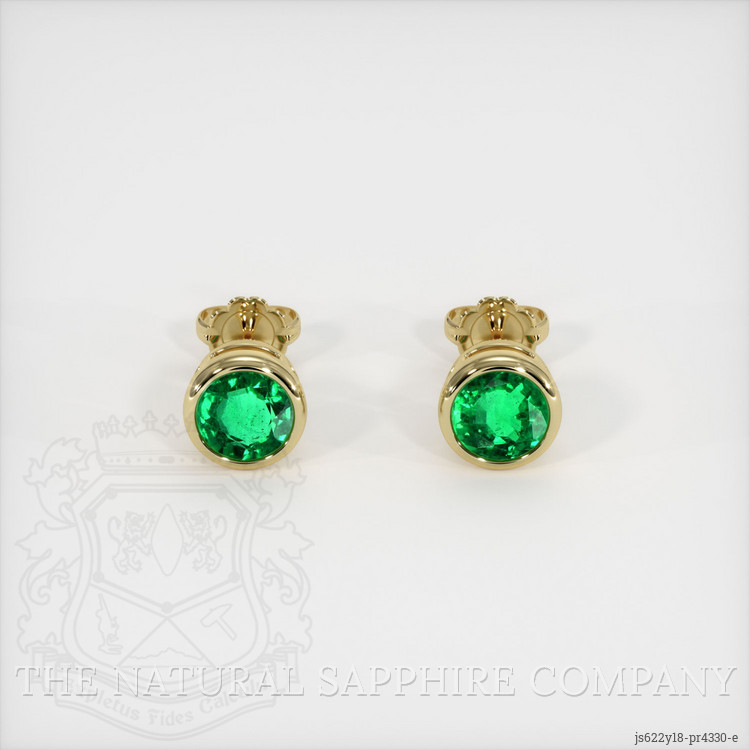 Studs Emerald Earring 3.20 Ct.Tw.Total Carat Weight, 18K Yellow Gold