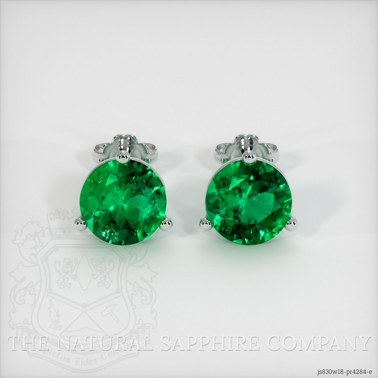 Studs Emerald Earring 3.23 Ct.Tw.Total Carat Weight, 18K White Gold