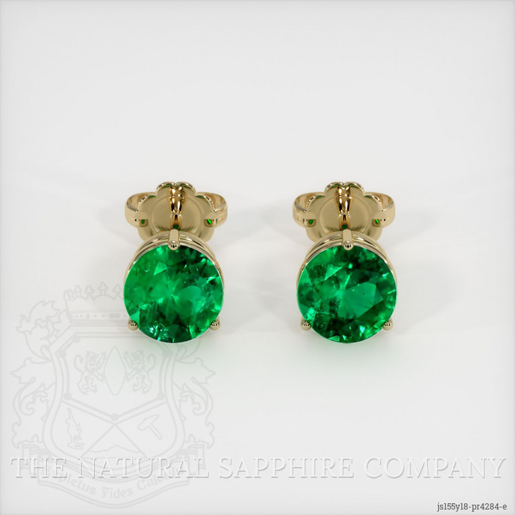Studs Emerald Earring 3.23 Ct.Tw.Total Carat Weight, 18K Yellow Gold