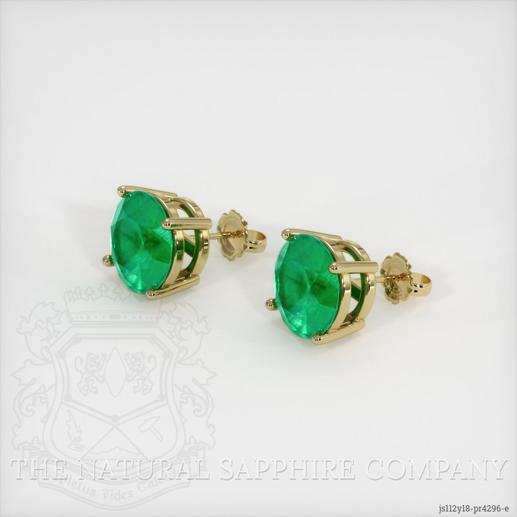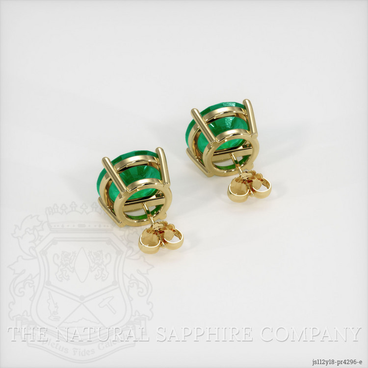 Studs Emerald Earring 7.25 Ct.Tw.Total Carat Weight, 18K Yellow Gold