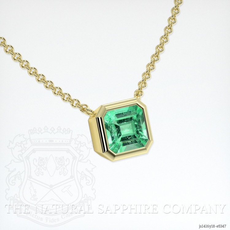 Introducing an exquisite masterpiece from The Natural Emerald Company, this necklace is a harmonious blend of elegance and technical precision, centered around a stunning, ethically sourced 1.11 carat Asscher-cut green emerald. Set in luxurious 18K yellow gold, the necklace reflects unmatched craftsmanship, elevating the natural allure of the emerald with its meticulous design. The Asscher cut, known for its geometric and symmetrical facets, enhances the emerald's transparency and light performance. With dimensions of 6.51 x 5.98 x 4.34 mm, this emerald showcases its shape with impeccable artistry, while the excellent polish further accentuates its luster, ensuring that it captivates with every movement.