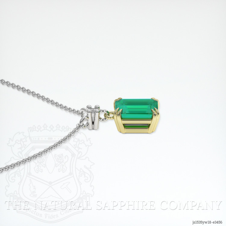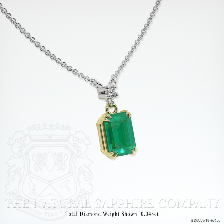 Discover a world of elegance and charm with our latest creation at The Natural Emerald Company, where luxury and artful design intertwine seamlessly. Imagine the moment you slip this exquisite necklace around your neck, where the luminescence of 18K yellow and white gold captures not only the light but also admiring glances from every admirer. At the heart of this masterful piece is a stunning emerald, sourced with the utmost care from the rich earth of Zambia. With its captivating 0.86 carat, emerald-cut green gemstone, this piece radiates an intense and rich color saturation that symbolizes the lush beauty of nature itself. Its slightly included clarity reminds us that true beauty often lies within, adding an authentic charm only nature can bestow.