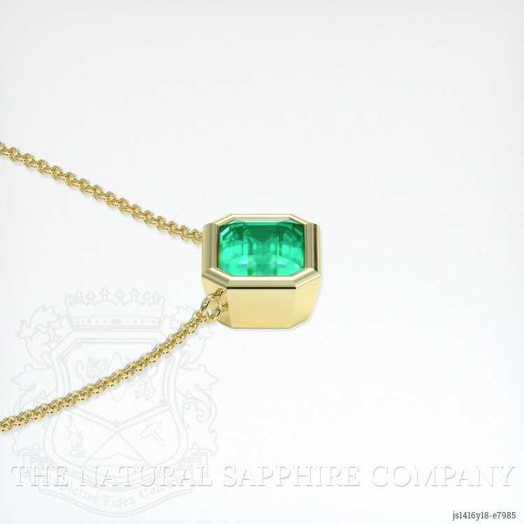 This necklace is entirely set in 18K yellow gold, finished with a refined bezel that frames a transparent emerald cut green emerald weighing 0.95 carat, with measurements of 6.93 x 5.07 x 3.69 mm. The emerald cut emphasizes clarity and internal structure, allowing light to travel through the stone and reveal a medium intense color saturation that reads rich and lively. The clarity grade is slightly included when evaluated at eye level, a characteristic that speaks to natural formation and gives the gem a depth that cannot be replicated by synthetic processes. The polish is excellent, and the standard enhancement applied is disclosed transparently with every purchase. The craftsmanship of the 18K yellow gold setting is designed to balance protection with presentation, securing the stone in a way that allows its vibrant green to take center stage against a warm gold backdrop. The overall proportions and the unobtrusive chain make this piece versatile, suitable for daily wear or for layering with other favorites when the occasion calls for a more considered look.