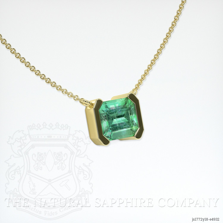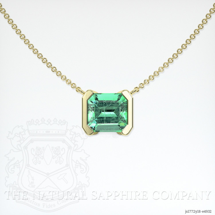 Introducing the exquisite emerald necklace from The Natural Emerald Company, a piece that effortlessly radiates elegance and sophistication far beyond similar offerings on the market. In a world where gemstone quality and precision often waver, our necklace stands as a testament to superior craftsmanship and rare beauty. The 18K yellow gold setting not only complements the stunning green hue of the emerald but also adds an opulent touch that underscores its luxurious nature. Other necklaces might claim excellence, but they rarely match the harmonious union of quality materials and meticulous design evident in this piece. The 1.75 carat emerald cut green emerald, sourced from Russia, showcases breathtaking clarity and medium color saturation. With dimensions of 7.34 x 6.48 x 5.20 mm and an excellent polish, this necklace distinguishes itself as a truly superior choice for discerning clientele.