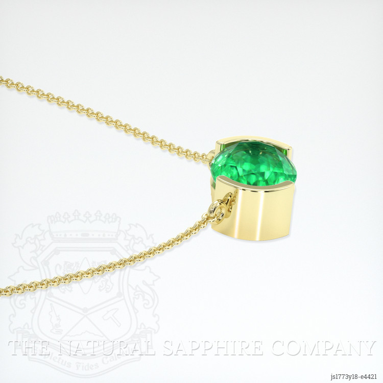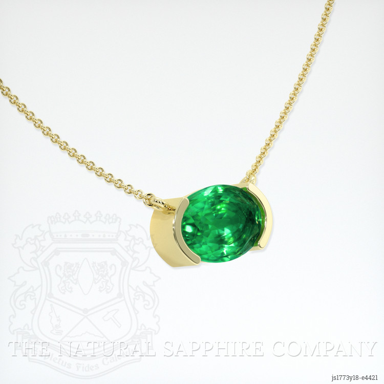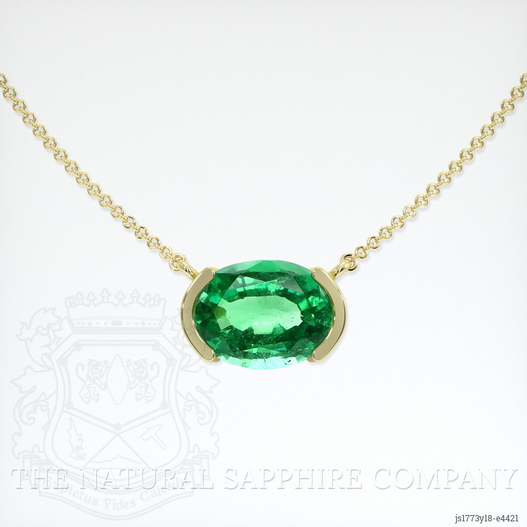 In a dance of light and elegance rests the centerpiece of a necklace that dreams are woven of. Crafted by The Natural Emerald Company this exquisite jewel whispers the story of ancient forests and hidden wonders. The stone shimmers with an emerald green so vivid and deep, as if it draws its color from the very heart of nature itself. The oval masterpiece, a 1.92-carat emerald from the lush lands of Zambia, is a marvel ensconced in 18K yellow gold. Its mixed brilliant cut sparkles with clarity that reaches into the soul, inviting endless contemplation under its flawless polish. This emerald appears almost untouched by time, graced with slight inclusions that add mystique and authenticity to its character.
