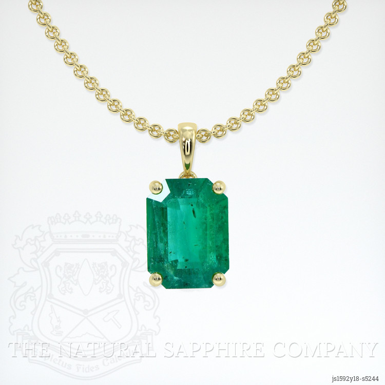 Discover a sense of elegance and exclusivity with our exquisite pendant from The Natural Emerald Company. Timeless in its allure, this piece is meticulously crafted to impart not just luxury, but a piece of nature’s splendor. Set in 18K yellow gold, it embodies sophistication and the finest craftsmanship. Showcasing a breathtaking 0.86 carat emerald, its stunning green hue radiates intensity, capturing the rich heritage of its Brazilian origin. The emerald is expertly fashioned in an elegant emerald cut with precise dimensions of 7.52 x 5.59 x 3.09 mm, celebrated for its excellent polish and clarity grade. While the stone’s inclusions are characteristic, they contribute to its natural charm, marking it as a testament to the earth's artistry.