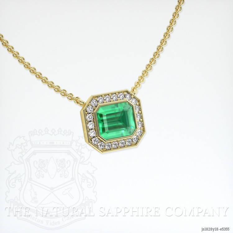 Discover the exquisite blend of sophistication and simplicity with our latest creation from The Natural Emerald Company. This pendant, set entirely in 18K yellow gold, embodies minimalist elegance that sets it apart in a world where oversaturation is often mistaken for luxury. At the heart of this elegant design lies a 1.38-carat emerald, meticulously cut into a timeless emerald shape, showcasing its vibrant hues with dimensions of 7.98 x 6.61 x 3.68 mm. Sourced from the gemstone-rich landscapes of Colombia, this magnificent green emerald offers a clarity grade characterized as very slightly included, best evaluated at eye level, ensuring an impeccable visual experience without distractions. Its medium-light color saturation allows for a subtle yet striking presence that speaks of sophistication and sublime beauty.